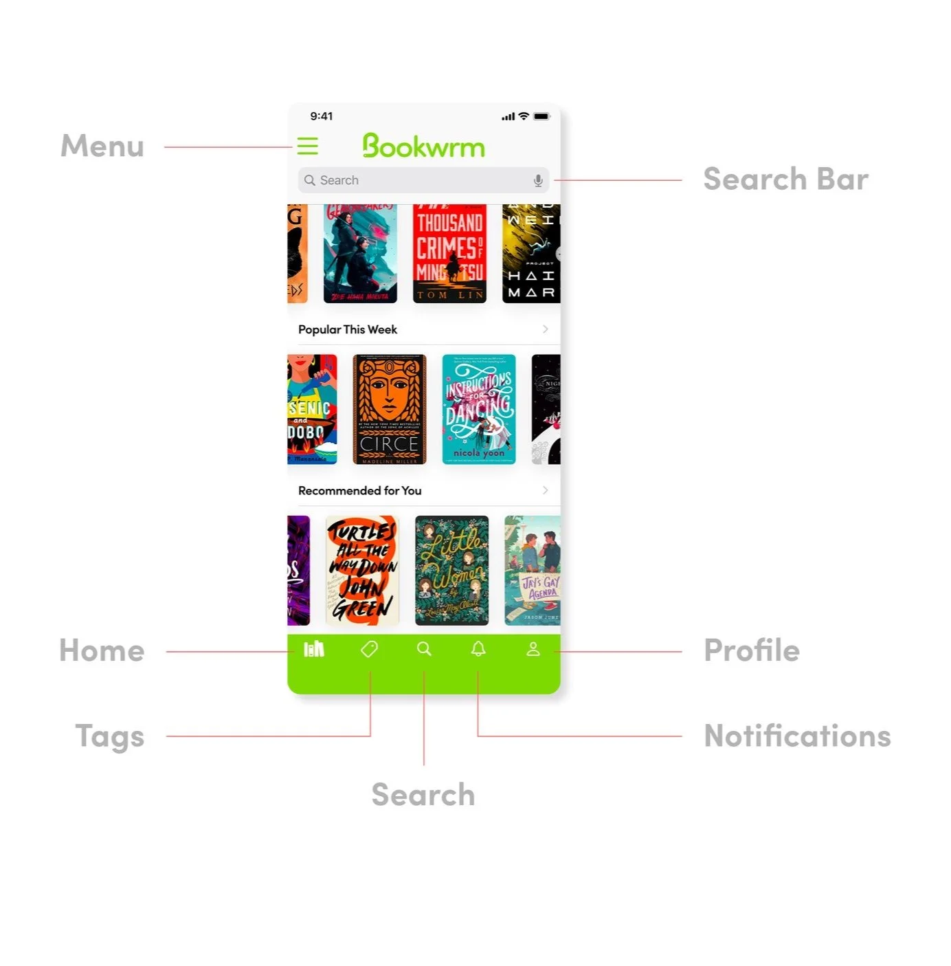 A design project for a booklover’s social media app. Bookwrm helps you find your new favourite book.